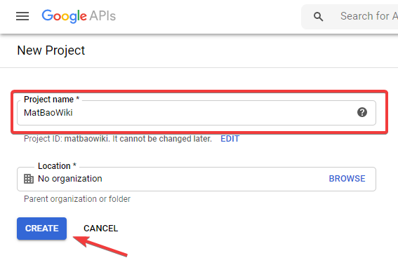 Lưu ý: Mỗi Project có thể chứa nhiều thư viện API, mỗi thư viện API có thể dùng cho nhiều website, tùy thuộc vào cài đặt của bạn.